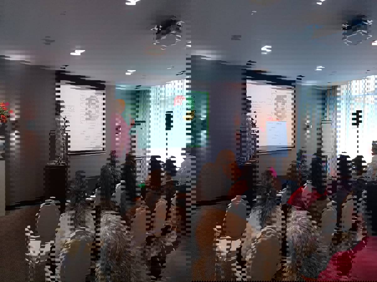 Bestuur spreekt tijdens symposium van collega afdeling.