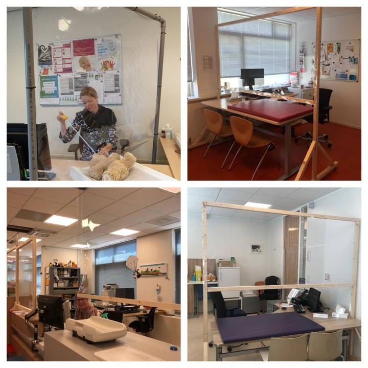 ‘Kuchschermen’ noemde Mark Rutte de plastiek afscherming in winkels en andere openbare ruimten. Ze verschijnen ook op steeds meer consultatiebureaus, bv bij CJG den Haag en GGD Hollands Midden. Volgens het RIVM vallen de kuchschermen niet onder de beschermende materialen, maar zijn het hygiëne maatregelen. Brenda Postmus showt in een filmpje op twitter hoe coronaproof haar JGZ-locatie in Noordwijkerhout van GGD Hollands Midden is.