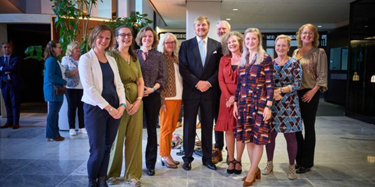 Van links naar rechts op de foto: Karien Wannee (IZB), Yvette Vreeker (VS-GGZ), Angelique Hol (Verzorgende), Conny de Pee (Technische Thuiszorg), koning Willem-Alexander, Ronald Touw (VS-GGZ), Pauline Arts (wijkvpl), Valerie Schipper (wijkvpl), Jacqueline de Vries (JGZ) en Marjolijn Broers (VS-ouderenzorg).