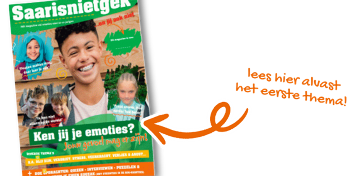 De stichting www.saarisnietgek.nl heeft mooi materiaal om de mentale gezondheid van kinderen 0-12 jaar makkelijk bespreekbaar te maken. Daar staat ’Saarisnietgek’ voor. Preventief hieraan werken is belangrijk, want psychische klachten nemen toe rond het 14e jaar. ‘Saarisnietgek’ doet dat o.a. met een eenmalig magazine Saarisnietgek over emoties en gevoelens. www.saarisnietgek.nl