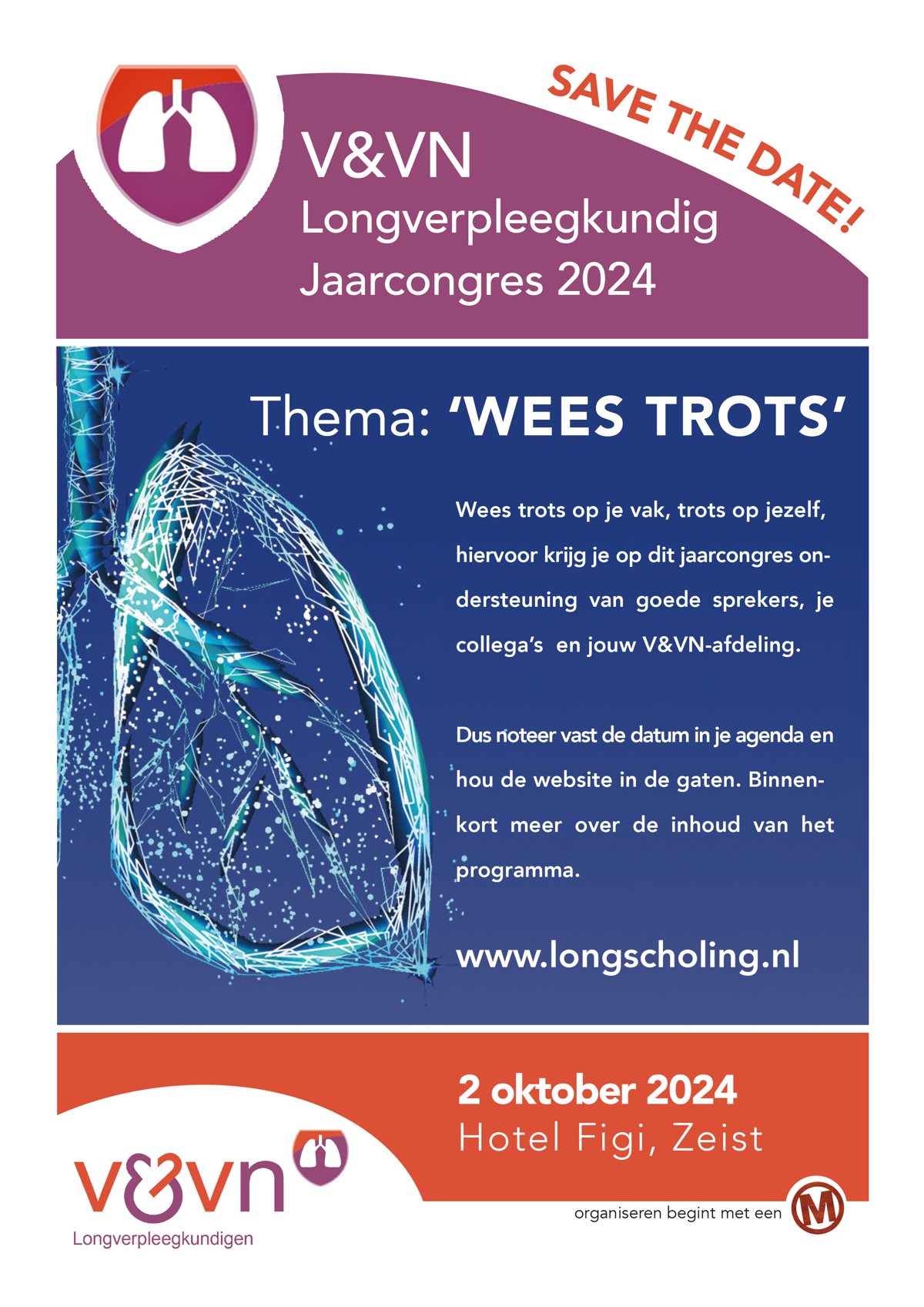 Noteer alvast in je agenda: dit jaar vindt op woensdag 2 oktober het Longverpleegkundig Jaarcongres weer plaats in hotel Figi in Zeist. Als thema van dit jaar is gekozen: