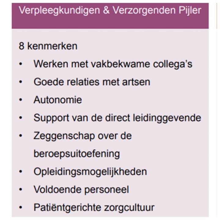 De afdeling Neuro en Revalidatie wil aansluiten bij het onderwerp excellente zorg. We denken dan met name aan de punten uit de eerste pijler. (zie afbeelding)