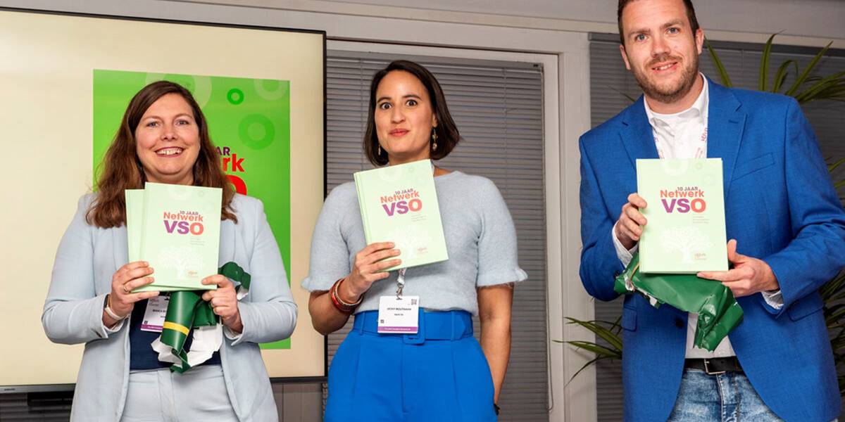 Tijdens het voorjaarsymposium van het netwerk Verpleegkundig Specialisten Oncologie (VSO) is het jubileumboek “10 jaar Netwerk VSO” gepresenteerd. Remco Albers, vicevoorzitter van het bestuur V&VN Oncologie, heeft namens V&VN Oncologie een exemplaar van het jubileumboek in ontvangst mogen nemen.