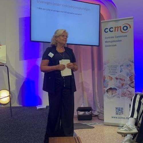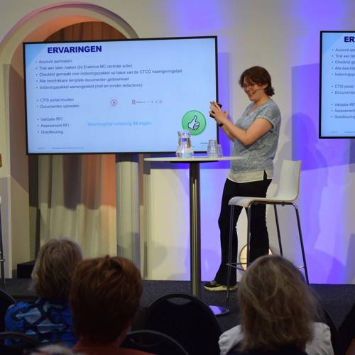 Tot slot sprak Paula Vossebeld over het Onderzoeksportaal die als vervanging van ToetsingOnline komt. Voordeel van dit nieuwe portaal is dat het veel overzichtelijker is dan het verouderde systeem. Patiënten kunnen ook beter onderzoeksinformatie terugvinden dan via andere trialregisters. Begin december zal dit nieuwe platform gelanceerd worden.