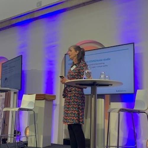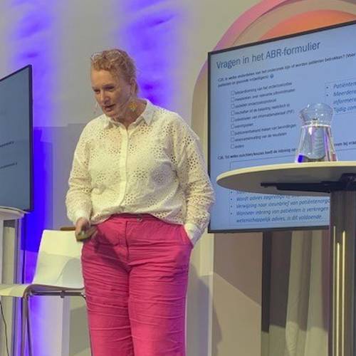 Vanuit de praktijk vertelde Linda Garms hoe ze hier invulling aan gegeven heeft bij een van de studies die op haar afdeling uitgevoerd werd. Voorwaarden van subsidiegevers en plannen op papier zijn mooi, maar waar vind je deze patiënten en hoe geef je hier een zinvolle invulling aan?