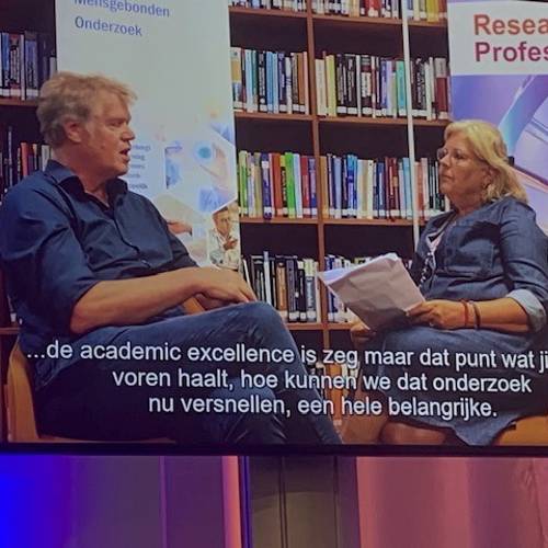 Vervolgens was de beurt aan Annemarie Geel, die voorzitter Stan van Belkum interviewde. Daarbij werd door Annemarie steeds benadrukt dat goed onderzoek zonder research professional niet mogelijk is. Stan vertelde over de CCMO en hun opdracht. Vooral het versnellen van onderzoek is een prioriteit. Hiermee samenhangend werd de administratielast besproken.
