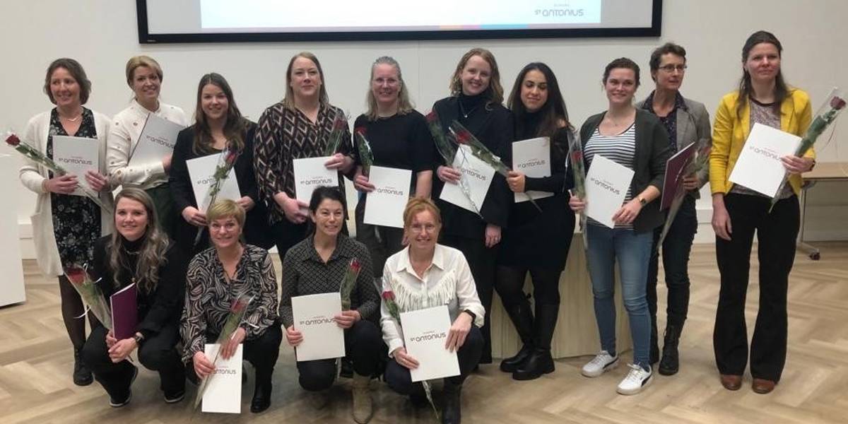 15 Februari mochten alle reumaverpleegkundigen, van de groep die in februari 2022 zijn gestart, hun diploma in ontvangst nemen. Mooi om te zien en te horen dat er een groep vol passie voor het vak reumatologie is afgestudeerd. We zijn trots dat jullie een jaar hard gewerkt hebben en naast je werk en je thuisfront deze prestatie hebben geleverd. Daarom heeft het iedereen namens het bestuur een jaar lidmaatschap van onze afdeling cadeau gekregen.