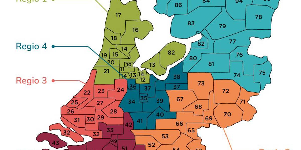 De nieuwe regioverdeling vindt u in de bijlage. Deelnemen kan in de eigen regio.