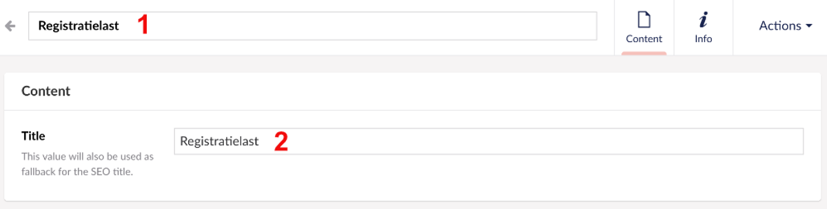 Met het element 'Content' start de pagina. Deze bevat in dit geval 2x Registratielast als ingevuld veld maar deze velden worden verschillend gebruikt.