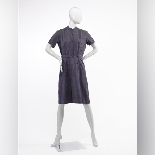 Het eerste afgebeelde uniform is een verpleegstersjurk, gedragen zonder het witte schort dat werd voorgebonden bij zorgtaken. Dit uniform geeft niet alleen inzicht in de geschiedenis van mode, maar ook in de professionele identiteit van verpleegkundigen door de jaren heen.