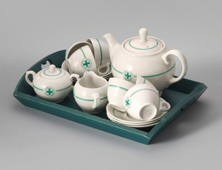 Wat weten we wel over het theeservies van het Museum voor de verpleegkunde FNI? Het is voorzien van decoraties van Het Groene Kruis en bestaat uit een theepot, zes kopjes met schotels, een melkkan en een suikerpot. Dit servies werd tot circa 1975 verkocht via het Centraal Magazijn Verpleegartikelen.