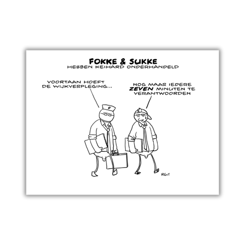 Een bekend voorbeeld zijn de strips van Fokke en Sukke in NRC. Deze humoristische tekeningen bieden op luchtige wijze commentaar op de uitdagingen en discussies rondom de wijkverpleging en de (thuis)zorg in het algemeen.