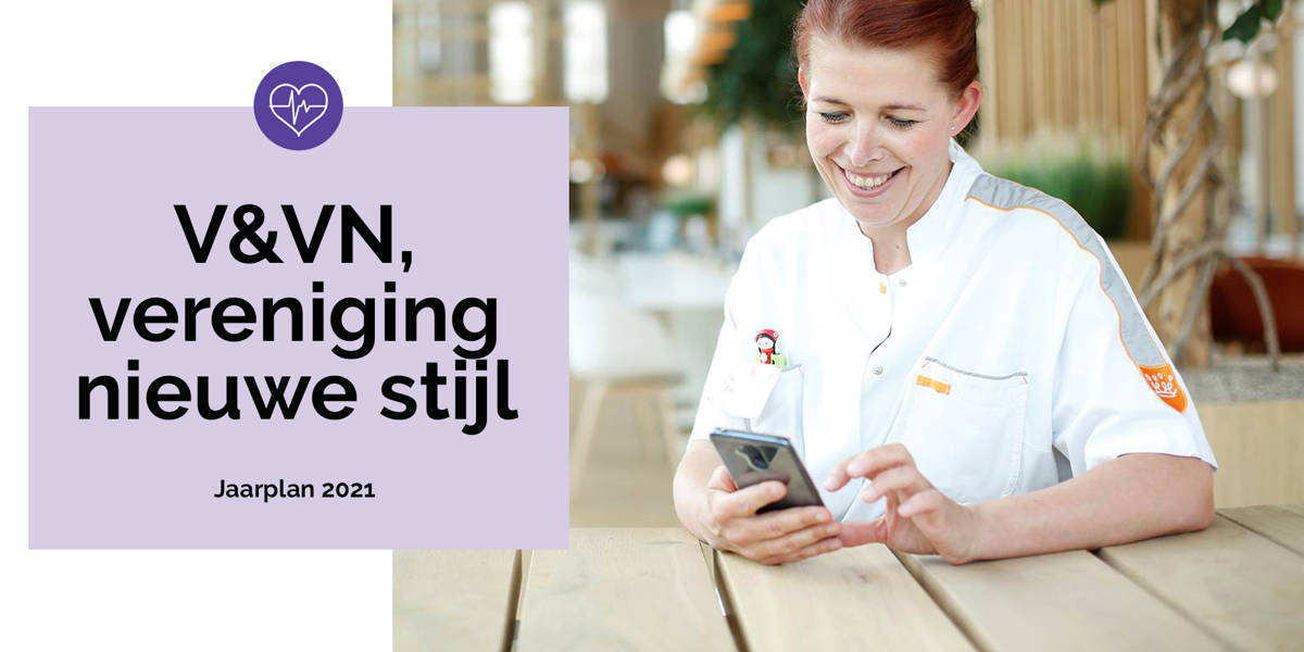 - Vanaf 2021 gaat een nieuw, vast verenigingsbestuur van start. Een bestuur waarvan de leden nog midden in de praktijk staan. Het bestuur zal zich vanaf 2021 vooral focussen op de strategische thema’s, die onder 1.) worden geformuleerd. De vertegenwoordiging van V&VN op andere onderwerpen wordt zoveel mogelijk belegd bij samenwerkende bestuurders van afdelingen en platforms.