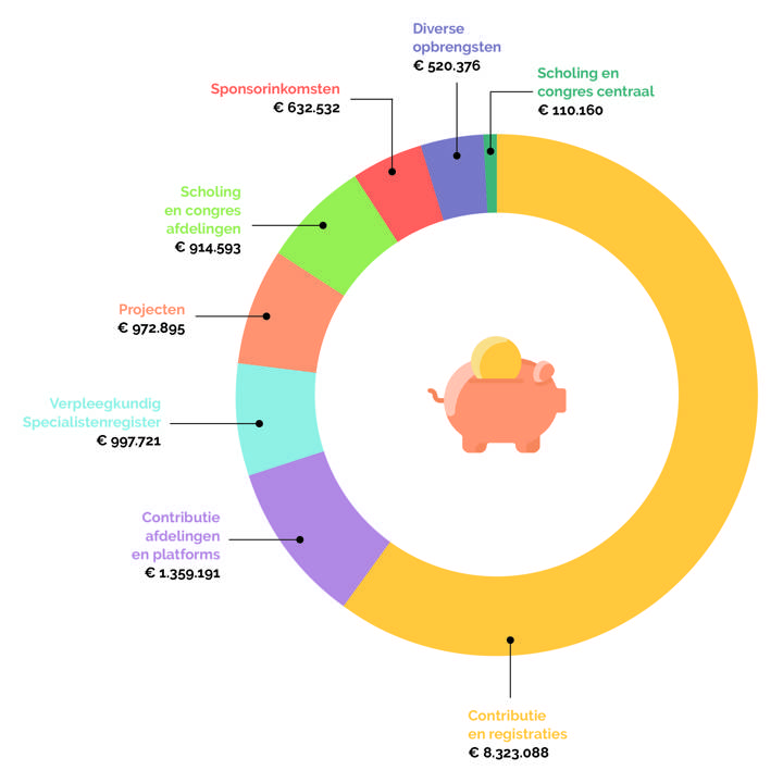 Inkomsten van afdelingen en platforms van sponsorgelden. Deze worden ingezet ter financiering van scholing en congressen. - Diverse opbrengsten