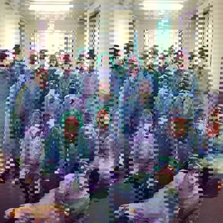 Op de foto zijn we onherkenbaar maar dit is wel een weergave van de toewijding en de teamspirit aan het begin van de Corona pandemie waarbij we plots een COVID cohort werden.