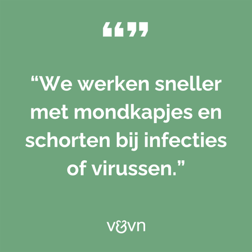 “Er zit bijvoorbeeld nog steeds geen verpleegkundige vertegenwoordiging in het Outbreak Management Team (OMT). Dat is heel hard nodig, want diegene zou bij uitstek geschikt zijn de stem van de verpleegkundigen en verzorgenden te vertegenwoordigen als het gaat om voorbereidingen op een mogelijk nieuwe pandemie. Tijdens de coronacrisis ontstonden er bijvoorbeeld problemen bij de praktische uitvoerbaarheid van richtlijnen. Zo kun je in de verpleging vaak geen 1,5 meter afstand houden. Voor een goede bescherming voor zowel zorgprofessionals, als patiënten en cliënten is het essentieel om goede richtlijnen te hebben.”
