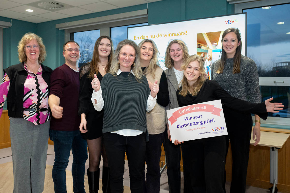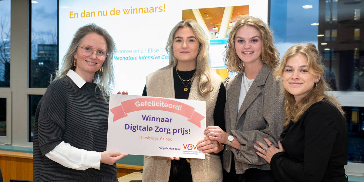 Dana de Haas, Marike Goense en Elise Foks zijn de winnaars van de Digitale Zorg Prijs 2024, een stimuleringsprijs voor studenten met een innovatief idee op het gebied van zorgtechnologie. De studenten Verpleegkunde aan Hogeschool Windesheim ontvingen maandagmiddag een cheque van 1.000 euro uit handen van minister Fleur Agema.