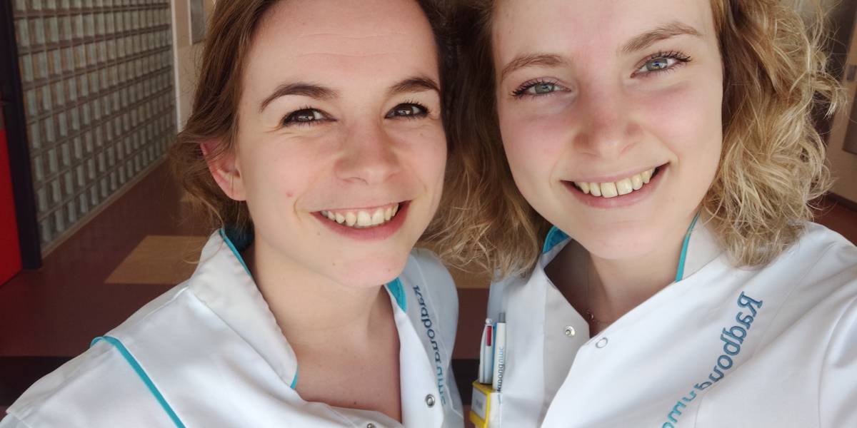 In opdracht van de Verpleegkundige Advies Raad (VAR) deden Lisa en Veerle, die inmiddels allebei stagelopen in het Radboudumc, literatuuronderzoek naar de Beter Laten-lijst en stelden ze een online enquête op. Deze werd ingevuld door 151 verpleegkundigen van zes verschillende afdelingen. Veerle: “Een hele klus. 66 handelingen uitvragen is veel, verpleegkundigen hebben weinig tijd.” Lisa vult aan: “We hebben ervoor gekozen om niet alle handelingen uit te vragen, maar alleen de handelingen die ziekenhuisbreed voor zouden kunnen komen. Zo kwamen we uit op 39 handelingen.”