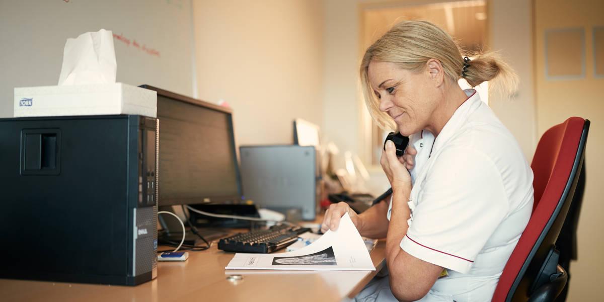 Sigrid Olde Scheper is transferverpleegkundige en collega van Anita. Zij zorgt dat de patiënt uiteindelijk met de juiste aangevraagde zorg het ziekenhuis verlaat. “De overdracht is ook voor mij redelijk omslachtig. Ik moet tussen dossiers wisselen. Vaak ontbreekt er informatie die ik moet opzoeken. Dat is kostbare tijd, terwijl het voor patiënten beter is dat zo snel mogelijk het volgende traject, bijvoorbeeld revalidatie, in gang wordt gezet.”