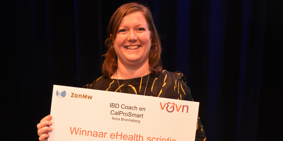 Ilona Bronneberg is de winnaar van de V&VN VZI eHealth Scriptieprijs 2019. De verpleegkundig specialist bij Zuyderland Medisch Centrum won de prijs voor haar scriptie ‘Draagt het gebruik van de CalproSmart thuistest bij aan het zelfmanagement van de IBD-patiënt?’. Volgens de jury zijn de uitkomsten van haar onderzoek zeer toepasbaar en zinvol in het kader van optimale inzet van eHealth. Ook is de jury enthousiast over het feit dat Ilona niet alleen de gebruikerservaringen van de eHealth-toepassing heeft onderzocht, maar dat ze ook heeft gekeken naar het effect op de zorgconsumptie.