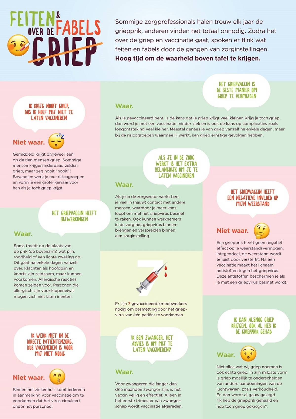 Het is van groot belang om het risico op besmetting bij kwetsbare cliënten en patiënten zo klein mogelijk te houden. Elke individuele verpleegkundige of verzorgende moet een eigen afweging kunnen maken met betrekking tot het halen van de griepprik. V&VN adviseert verpleegkundigen en verzorgenden om de griepvaccinatie wel te nemen. Het griepvaccin is helaas nog niet het allerbeste vaccin, maar het is wel het enige vaccin dat aantoonbaar zorgt voor een vermindering van het aantal griepinfecties. V&VN vindt vaccineren van belang, omdat dit een positief effect heeft op de gezondheid van (kwetsbare) patiënten, cliënten en bewoners. Mede doordat het percentage zorgprofessionals dat zich in Nederland laat inenten laag is, is het effect niet groot genoeg. Naast de griepvaccinatie is het daarom belangrijk om ook andere infectiepreventiemaatregelen, zoals goede handhygiëne, niet te vergeten.