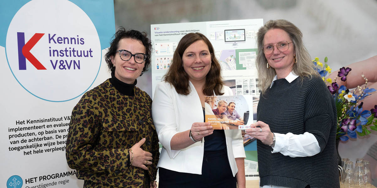 Wat helpt om agressie in de zorg te voorkomen? Wat kun je doen als er te weinig collega's zijn om de zorg te geven die nodig is? Welke digitale hulpmiddelen zijn het effectiefst? Voor deze en andere onderwerpen worden de komende jaren kennisproducten (zoals richtlijnen, video's en infographics) ontwikkeld, of onderzoeken gestart. Welke onderwerpen dat zijn, vind je in de nieuwe Kennis- en Ontwikkelagenda V&VN, die Fleur Agema, minister van VWS, vandaag in ontvangst heeft genomen uit handen van V&VN-voorzitter Bianca Buurman en V&VN-bestuurder Catharina van Oostveen.