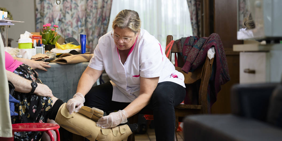 Annemiek: “Ik zie dat veel zorgvragers eigenlijk niet weten waarom compressietherapie wordt toegepast, en waarom het zo belangrijk is. Mensen denken vaak: die druk op de wond doet aardig zeer, dat kan toch niet goed zijn? Door voorlichting te geven, krijgen zij het vertrouwen in de werking ervan en zullen ze eerder geneigd zijn mee te werken en het een kans te geven.”