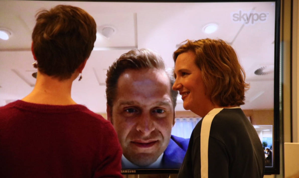 Een dag voor de afspraak op het ministerie van VWS spraken minister de Jonge en Sonja Kersten elkaar via Skype vanuit het V&VN actie belcentrum #meerzorgminderpapier