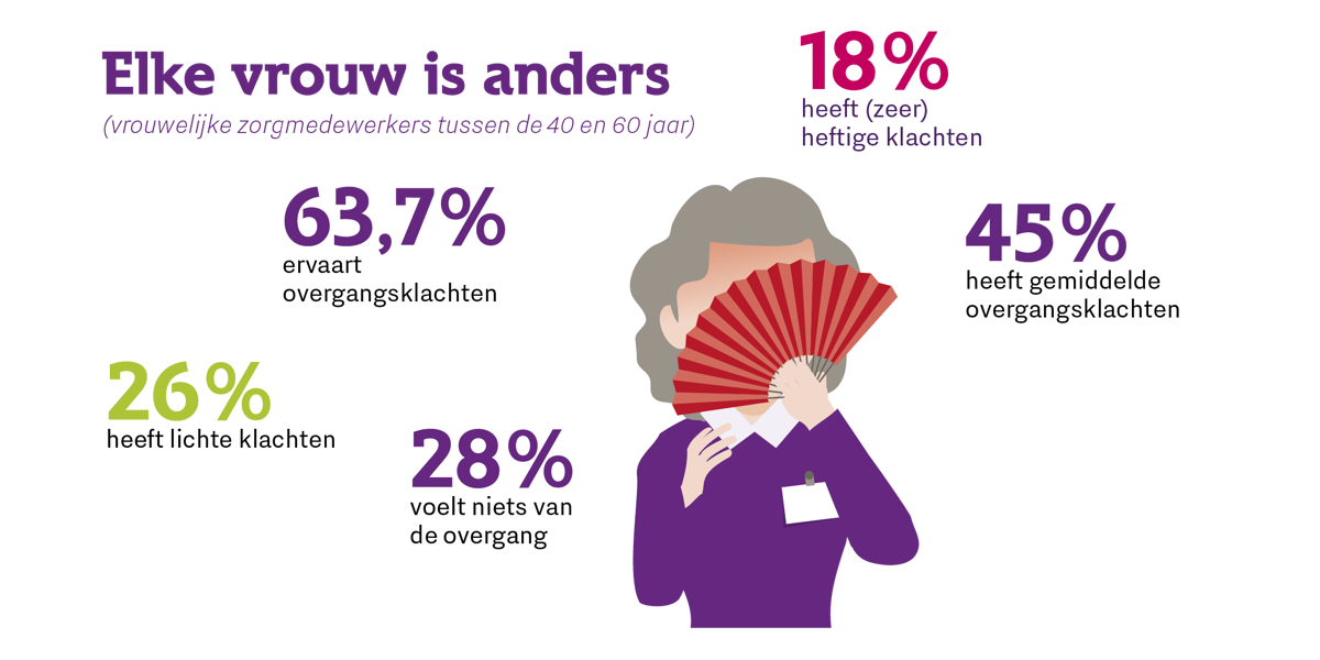 Met elkaar en met leidinggevenden, want dat helpt. Ruim 63% van de werkende vrouwen in de zorg tussen de 40 en 60 jaar heeft namelijk klachten. Soms zijn die heftig. En als die bespreekbaar worden op het werk, helpt dat uitval voorkomen, zo blijkt uit een onderzoek onder 160.000 leden van Stichting IZZ, het collectief waar de meeste zorgprofessionals verzekerd zijn.