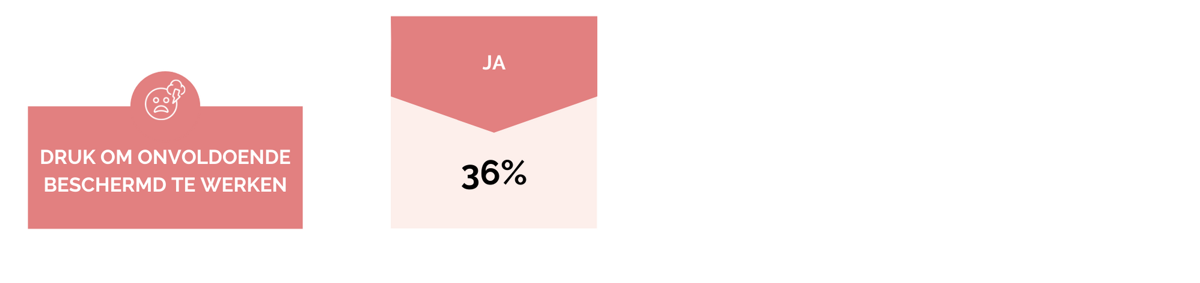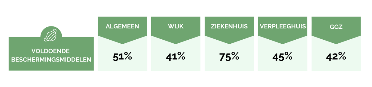 Ruim één op de drie verpleegkundigen en verzorgenden ervaart druk om zonder voldoende beschermende middelen toch zorg te verlenen. In wijk en verpleeghuis is dat bijna de helft. Druk vanuit het management/de leidinggevende speelt een rol bij één op de vijf collega’s. In de wijkverpleging ervaart bijna een kwart van het personeel druk van de leidinggevende om onbeschermd zorg te verlenen.