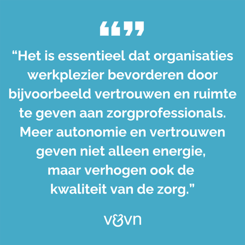 Het aantrekken en behouden van verpleegkundigen en verzorgenden is – bij een afnemend arbeidsaanbod en een toenemende zorgvraag – minstens zo belangrijk. Verpleegkundigen en verzorgenden noemen werkplezier cruciaal om het ziekteverzuim te beperken, collega’s te behouden en nieuwe collega’s aan te trekken. Zeventig procent van de respondenten geeft aan dat er meer aandacht moet zijn voor een goede werk-privébalans.