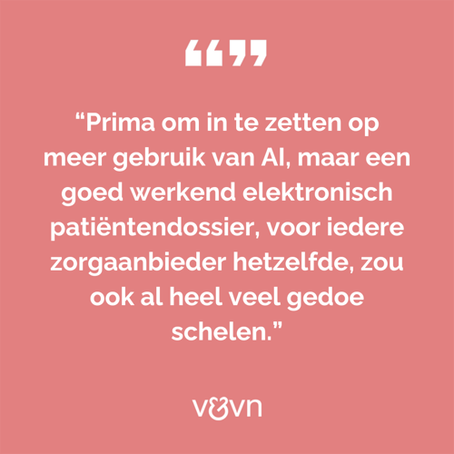 Beter werkende ICT-systemen en innovaties – zoals spraakgestuurde rapportages – worden door leden gezien als oplossingen. Ruim veertig procent van de respondenten ziet veel meerwaarde in de verbetering van gegevensuitwisseling tussen organisaties. Vermindering van administratieve lasten levert meer tijd op voor direct contact met patiënten en cliënten.