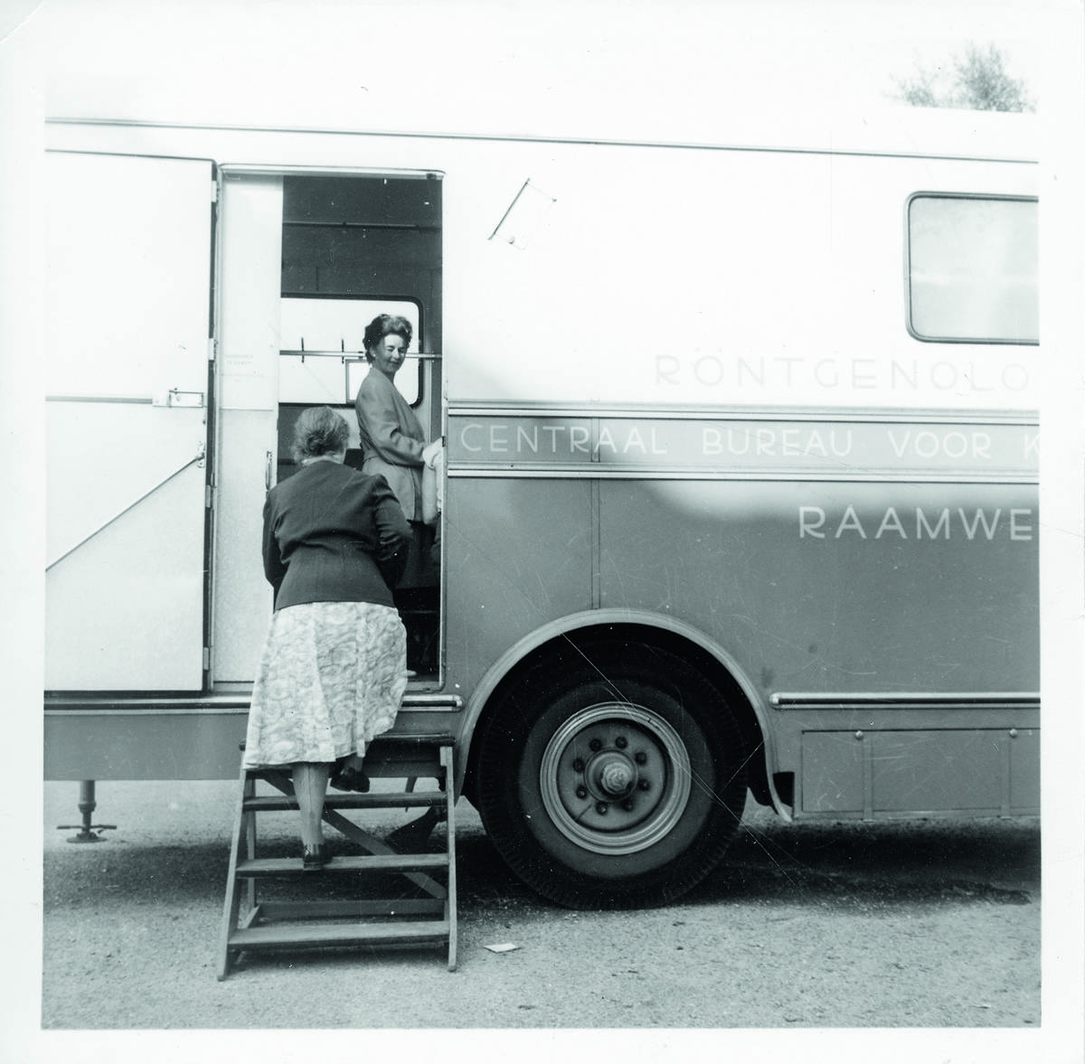 Na de Tweede Wereldoorlog kon iedereen zich vrijwillig laten screenen bij tuberculose-consultatiebureaus. Vanuit de bureaus trokken wijkverpleegkundigen de buurten in om zieke patiënten te ondersteunen, contactonderzoeken te verrichten, vragen over tuberculose te beantwoorden en om mensen te stimuleren zich te laten onderzoeken. Vanaf 1956 trok een vloot ‘schermbeeldauto’s’ door Nederland, waarin een röntgenonderzoek mogelijk was.