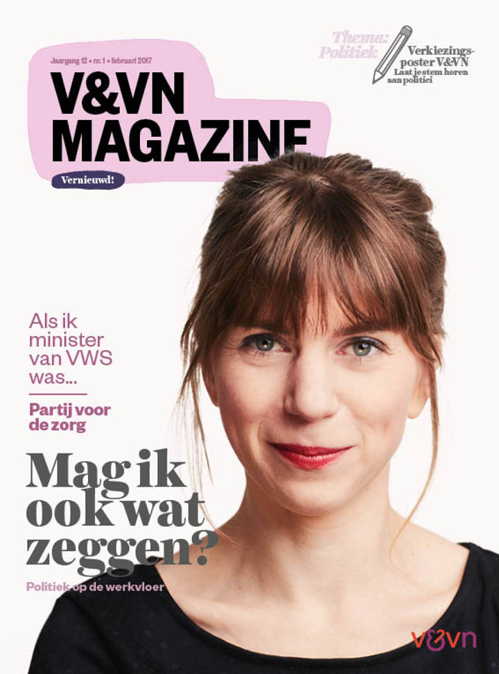 Met trots presenteren we een geheel vernieuwd V&VN Magazine; 10 februari bij alle leden van V&VN in de brievenbus. We beginnen serieus, met een themanummer vol politiek. Want het is menens, kondigt V&VN-voorzitter Henk Bakker aan. Zorg en politiek zijn nooit eerder zo verweven geweest als in deze tijd. V&VN Magazine verschijnt mét grote uitneembare V&VN Verkiezingsposter met een oproep van de beroepsgroep aan politiek Den Haag: Vertrouw op ons, want betere zorg begint bij verpleegkundigen en verzorgenden.