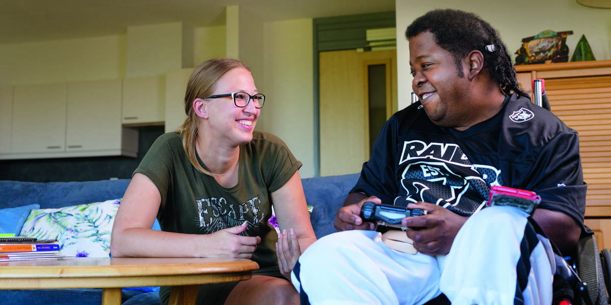 Ik werk met de doelgroep met niet aangeboren hersenletsel en/of een lichamelijke beperking. Een aantal cliënten is progressief ziek, zij zullen uiteindelijk overlijden aan hun ziekte – maar dat kan nog jaren duren. We voeren gesprekken over hoe ze hun toekomst voor zich zien, wat er op hun bucketlist staat en wat ze niet meer willen. Wil iemand nog gereanimeerd worden? Of beademd? Ook begeleiden we met rouw en verlies. Hoe gaat iemand met de situatie om? Is er extra hulp nodig?”