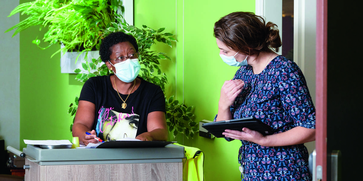 Simone: “Momenteel hebben wij gelukkig geen besmettingen. Wel zijn we continu alert op verschijnselen en testen we zo gauw daar aanleiding voor is. Een paar weken geleden hebben wij onze bewoners de boosterprik gegeven. Ons uitbraakteam heeft wekelijks overleg om snel te kunnen schakelen wanneer het nodig is. Tegelijkertijd blijft de werkdruk hoog. Niet alleen door corona, maar ook doordat mensen steeds langer thuis wonen en daardoor steeds slechter bij ons binnenkomen.”