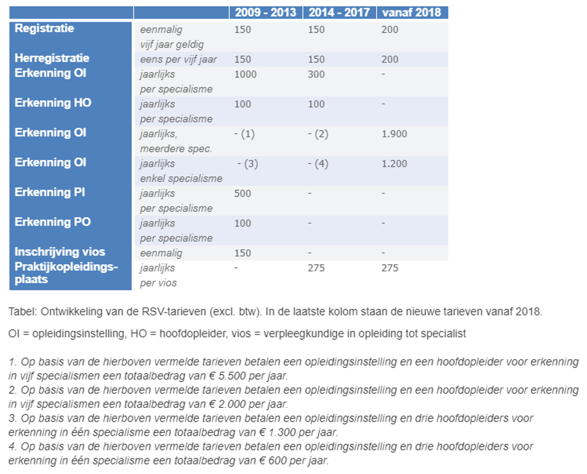 De tarieven voor registratie en herregistratie worden, voor het eerst sinds 2009, verhoogd; van €150 naar €200 (excl. btw). De tariefsverhoging is noodzakelijk, omdat de kosten die door de RSV worden gemaakt voor (her)registratie, veel hoger uitvallen dan de opbrengsten.