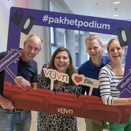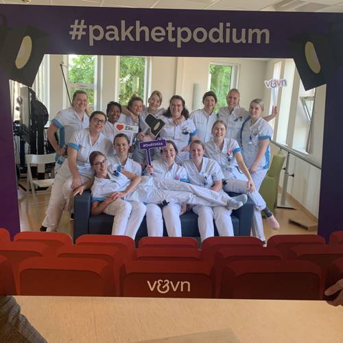 Van Leeuwarden tot Heerlen en van Enschede tot Rotterdam. Van zondag 12 tot en met donderdag 16 mei gaat #pakhetpodium ook het land in. V&VN bezoekt zestien zorginstellingen en gaat daar met collega’s in gesprek over hun successen. Natuurlijk is er ook tijd om mee te doen aan de foto-actie.