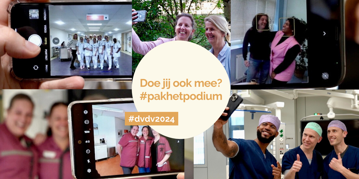 Breng in beeld waar jij en jouw collega’s trots op zijn en doe mee met Pak het podium! De actie start op zondag 12 mei en loopt tot en met donderdag 16 mei. Zo doe je mee: