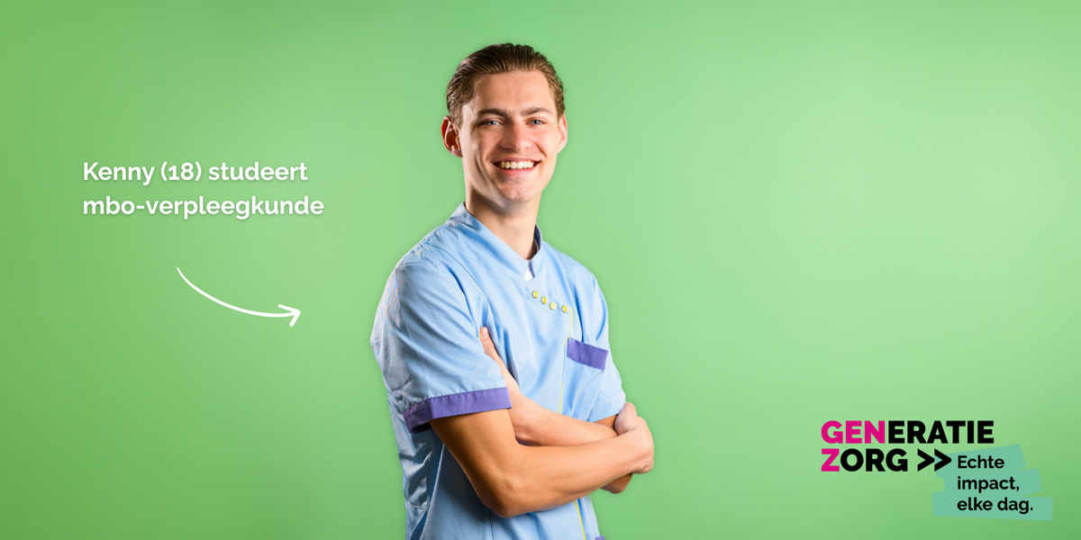 Kenny de Keijzer (18) is mbo-student verpleegkunde. Hij loopt stage in de gehandicaptenzorg en draait daarnaast avonddiensten in een verpleeghuis. Zijn einddoel? Op de ambulance.