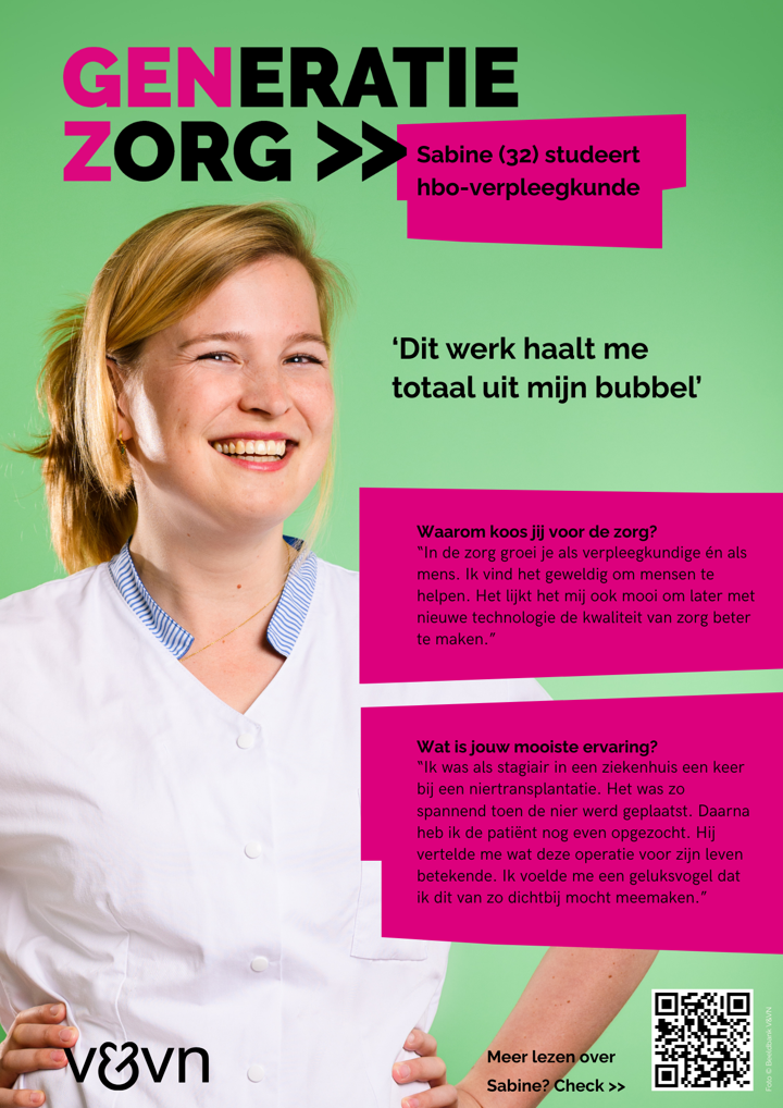 Met de actie GENeratie Zorg willen we Gen Z (8 tot 20 jaar) enthousiast maken voor een baan in de zorg. Een inspirerend voorbeeld kan daarbij helpen! Dus vroegen we zeer gemotiveerde studenten, starters, doorgewinterde zorgprofessionals en zij-instromers: waarom hebben zij voor de zorg gekozen? Wat is tot nu toe hun mooiste of indrukwekkendste zorgervaring? Wat maakt voor hen dat de zorg elke dag anders is? Hoe zien zij hun toekomst in de zorg?