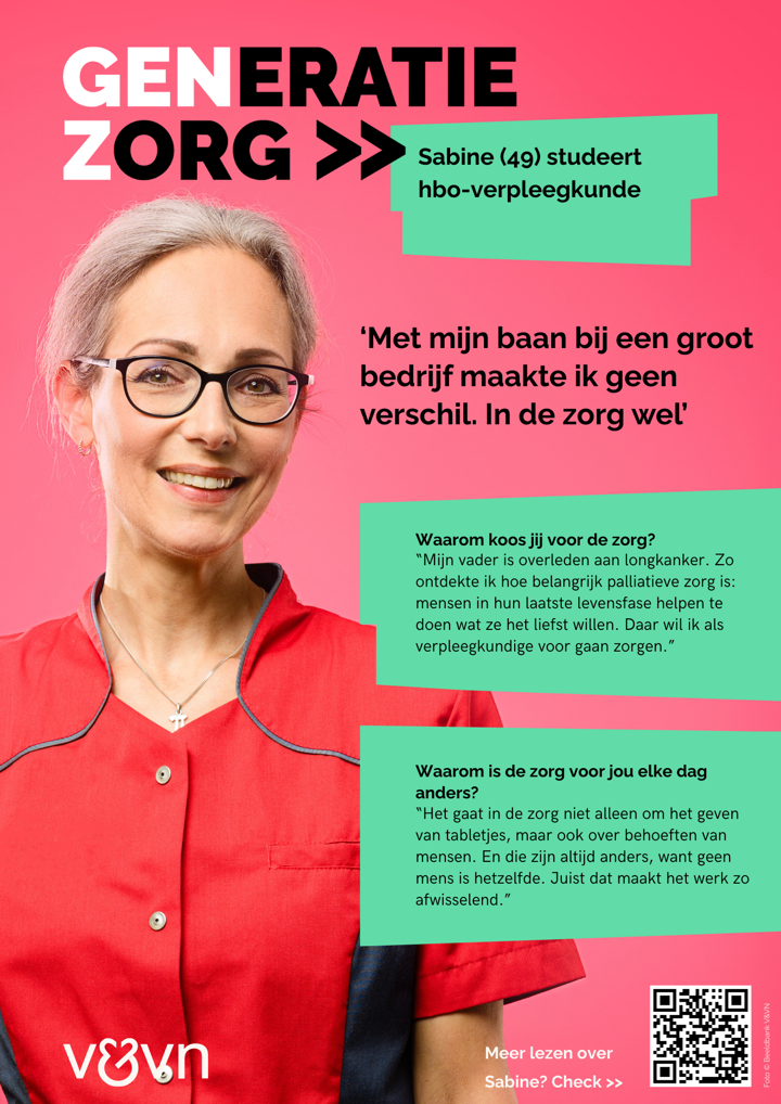 Help je mee om de jongste generatie te motiveren voor een baan in de zorg? Deel bijvoorbeeld dit portret op je eigen social-mediakanalen of geef een gastles op een basis- of middelbare school. De toolkit met lesmaterialen blijft beschikbaar. Ook kun je fysieke campagnematerialen aanvragen, zoals posters en stickers (zolang de voorraad strekt).