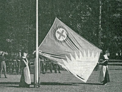Terwijl dr. Dijk spreekt, klinkt goedkeurend en luidkeels gejuich. De zon schijnt fel en het instemmende fietsbelgerinkel is oorverdovend. Spandoeken wapperen in de wind. Op een spandoek staat: ‘Zonder zuster aan uw bedje, is ziek zijn geen pretje’. Bij elk woord van de geneesheer-directeur stijgt de spanning. “Goede reis!” schreeuwt dr. Dijk en met een lach geeft hij het startsignaal voor de fietskaravaan.
