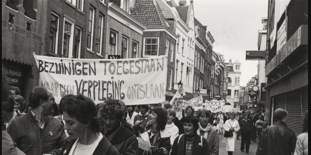 ‘Wie is er nu echt ziek? Te veel werk en toch minder mensen en dus minder zorg: ACTIEDAG van de verpleging!’, zo klinkt de protestleus op de Dag van de Verpleging in 1982. Door bezuinigingen van de overheid is er minder geld beschikbaar voor de verpleegkunde. De werkdruk is hoog en goede zorg komt daardoor in gevaar. In heel Nederland staan verpleegkundigen op en komen in actie.