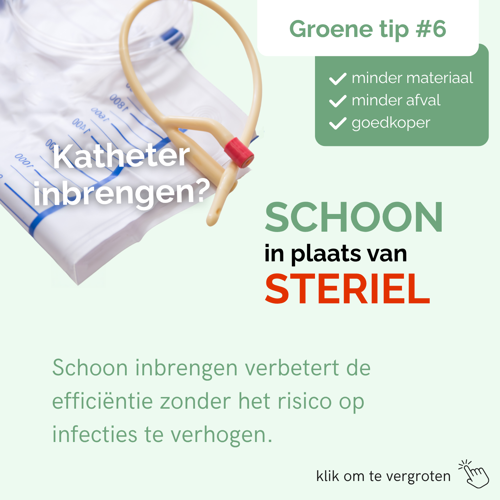 Voorbeeld: in het Radboudumc leverde de overstap naar schoon inbrengen een besparing op van ongeveer € 60.000 per jaar en ruim 2.000 kilo minder afval.
