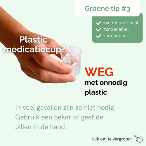 Dagelijks worden in de zorg duizenden plastic medicatiecupjes gebruikt, terwijl dat niet altijd nodig is.