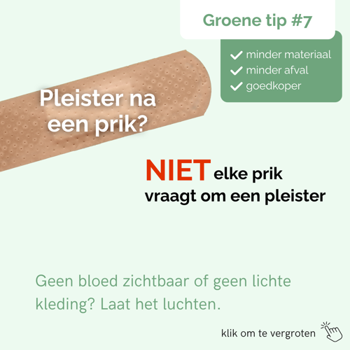 - Laat de pleister achterwege bij kleine prikken of vaccinaties zonder bloeding.