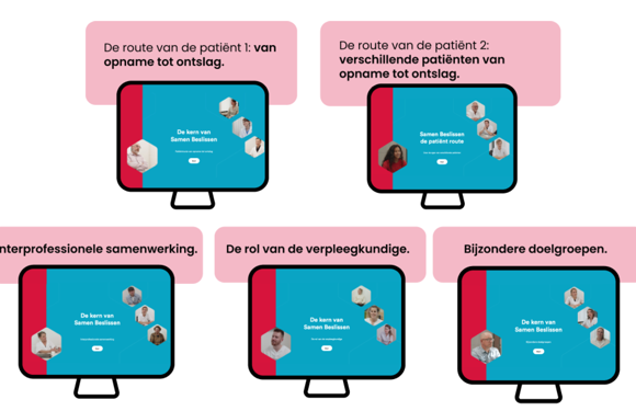 Vijf e-learnings die je kosteloos en los van elkaar kunt volgen. De e-learnings gaan in op wat samen beslissen nu écht is, hoe je het vormgeeft in het gesprek met de patiënt en naasten en wat het betekent voor jou als zorgprofessional in je dagelijkse werkzaamheden. Je krijgt concrete tips en vragen over jouw eigen ervaringen. Nieuwsgierig?