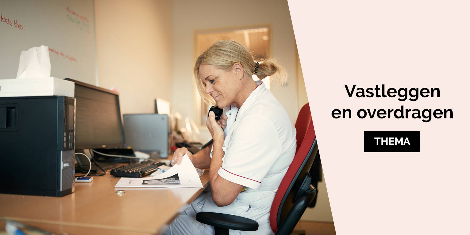 Net als de meeste verpleegkundigen is Whitney nog niet bekend met de term eOverdracht. Dat komt doordat de standaard nog relatief nieuw is en stapsgewijs landelijk wordt ingevoerd. Toch ziet zij veel voordelen in een standaard manier van gegevens overdragen binnen en tussen zorgorganisaties. “Ook al werken we nu volledig digitaal, er gebeurt ook nog best veel op papier zoals de poli-afspraken en ontslagbrieven. Dit geldt ook voor de overdrachten naar zorgverleners buiten ons ziekenhuis en de overplaatsingen naar een ander ziekhuis. In het geval er beeld moet worden overgedragen dan gaat er een cd-rom met de patiënt mee. Met alle nadelen die daarbij horen zoals langere wachttijden bij ontslag van patiënten, onvolledige of onduidelijke informatie en een grotere kans op fouten. Daar is dus nog een wereld te winnen.” Inmiddels is het UMC+ dan ook aan de slag met weer een nieuwe stap in de professionalisering; het standaardiseren van de basisgegevens met behulp van zogenoemde zorginformatiebouwstenen, oftewel kortweg zib’s. Dat betekent dat zij zorginformatie zo vertalen dat deze systeemonafhankelijk wordt en dus eenvoudiger kan worden uitgewisseld met andere zorgverleners die vaak een heel ander systeem gebruiken. De mogelijkheid wordt onderzocht om de uitwisseling te gaan uitproberen met thuiszorgorganisatie Envida.